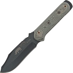 10 5/8" overall. 4 7/8" black traction coated 1095 high carbon steel blade. Black linen Micarta handles. Full tang with pry bar end. Black Kydex sheath.